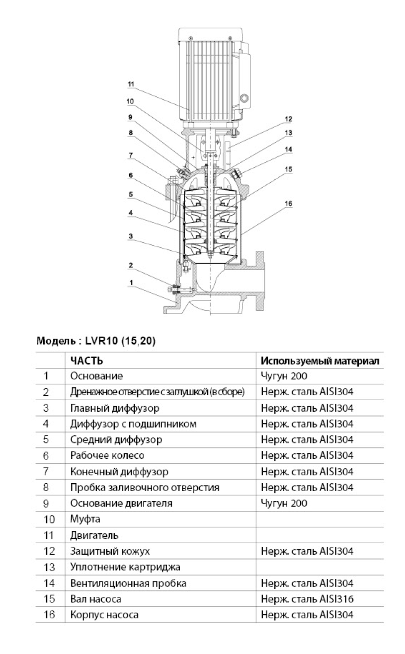 Насос LEO LVR 20-7 предназначен для перекачки невязких, негорючих, невзрывоопасных, не содержащих твердых включений и волокон жидкостей